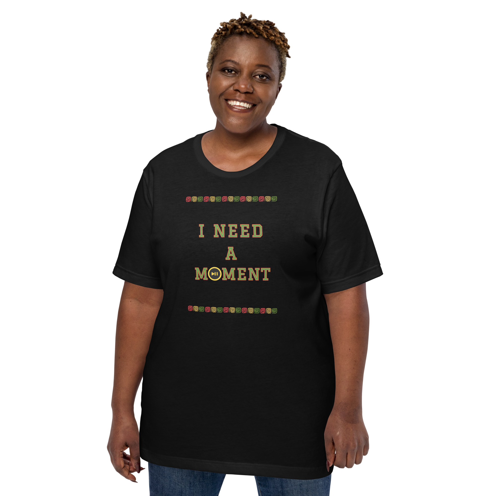 History, culture, and self-care—all in one tee. This edition of the “I Need A Moment” t-shirt is a wearable reminder that rest is a right, and reflection is powerful. With vibrant African-inspired accents and bold lettering, this limited-edition piece lets you celebrate the culture while embracing your moment.